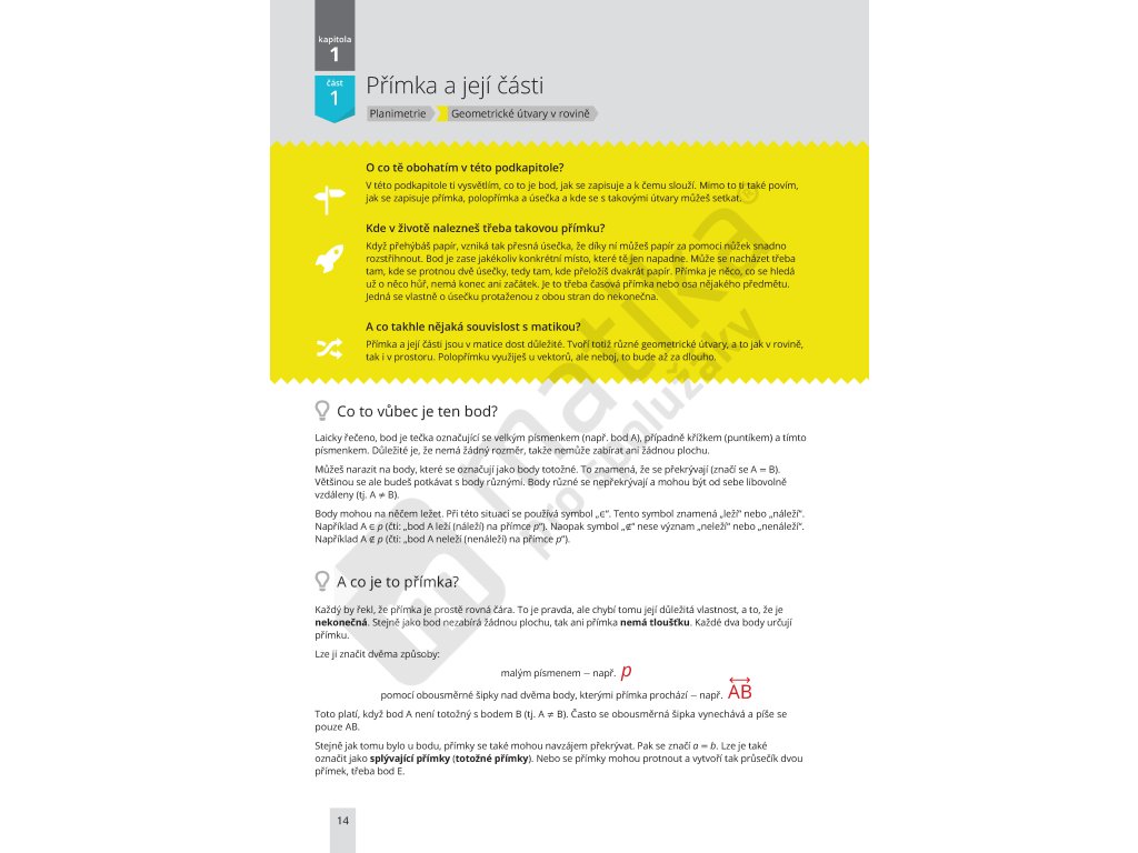 Učebnice je ideální pro studenty 2. ročníků středních škol. Látka je vysvětlena velice srozumitelně a celou problematikou vás provede krok za krokem. Pokud ve škole nějaký výklad nepochopíte, můžete se k látce v naší učebnici kdykoliv vrátit. Učebnice disponuje cvičnými příklady, které jsou doplněny o QR kódy, které vám po nahrání otevřou správné řešení příkladu, včetně postupu a komentáře na našem webu. Učebnice je skvělá vstupenka do světa planimetrie.