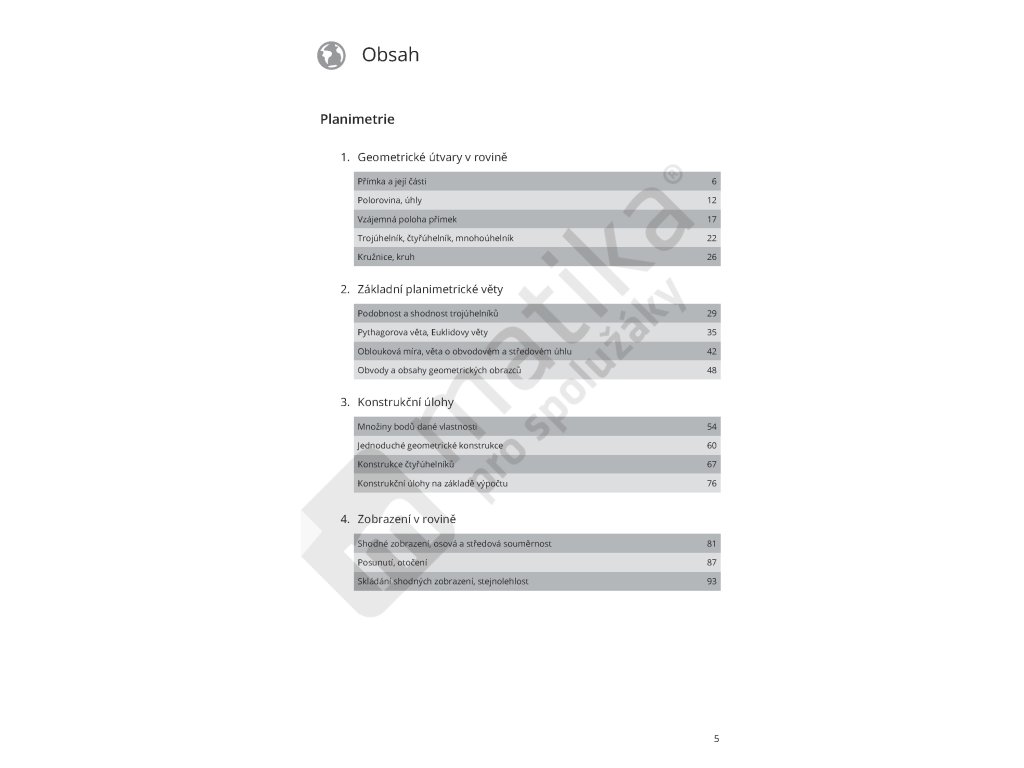Pracovní sešit je určen pro studenty 2. ročníku středních škol a je úzce provázán s učebnicí Planimetrie. Učebnice vám poskytuje všechny potřebné výklady a postupy, díky kterým budete schopni řešit příklady v pracovním sešitu. Příklady jsou řazeny vzestupně podle náročnosti. Máte tak jedinečnou možnost zlepšovat se a mapovat svůj postup zároveň s postupem v pracovním sešitu. Každá kapitola obsahuje krátké výpisky, které vám připomenou to nejdůležitější, co budete při počítání potřebovat. Na konci kapitoly pak najdete výsledky jednotlivých příkladů, nemusíte tak složitě listovat v rozsáhlém rejstříku na konci knihy, ale jednoduše si ověříte správnost výsledku o pár stránek dále.