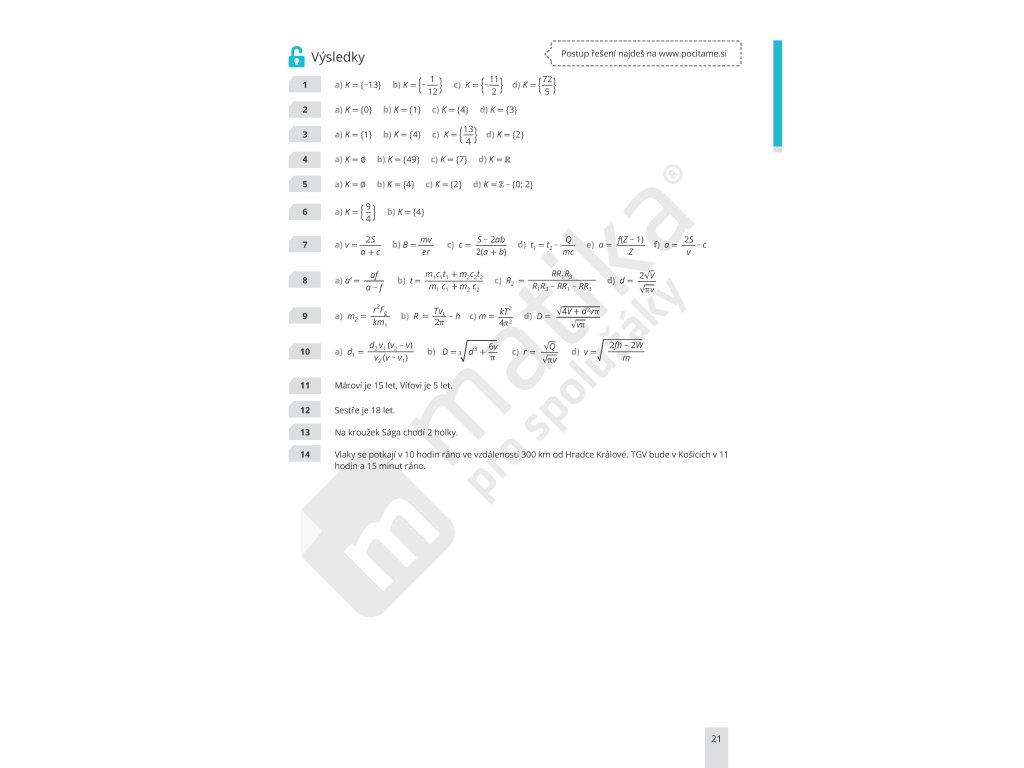 Každá kapitola je zakončena cvičnými příklady, na kterých si můžete nově získané vědomosti vyzkoušet a ověřit správnost svého výpočtu pomocí QR kódu na našich webových stránkách. Učebnice je plnohodnotná učební pomůcka a splňuje požadavky Rámcového vzdělávacího programu. Pokud stále váháte, mohlo by vás přesvědčit, že podle našich učebnic se už učí více než 21 000 studentů na více než 200 školách po celém Česku a Slovensku.