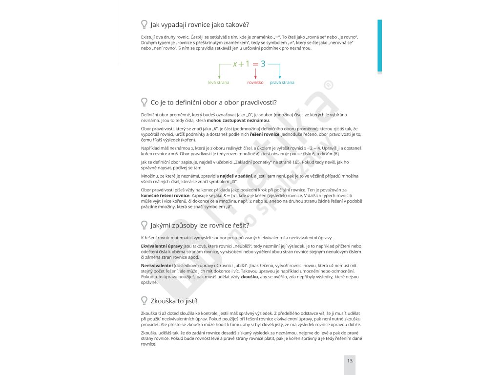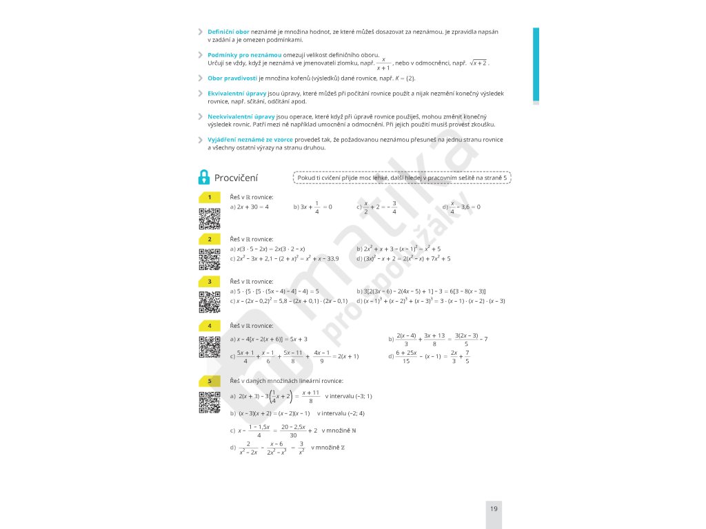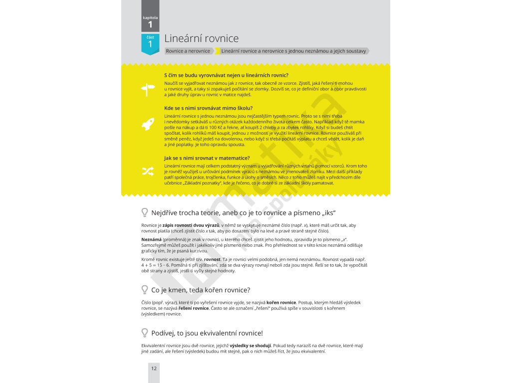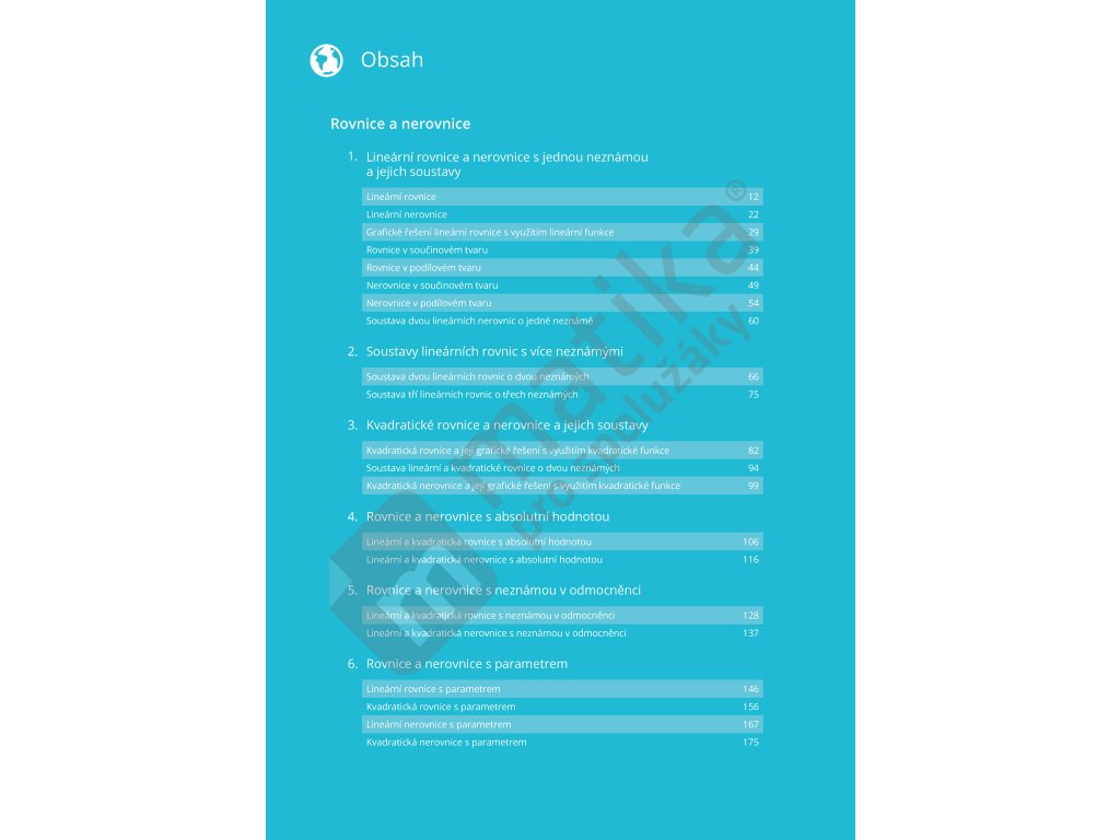 Učebnice je ideální pro studenty 1. ročníků středních škol. Látka je vysvětlena velice srozumitelně a celou problematikou vás provede krok za krokem. Pokud ve škole nějaký výklad nepochopíte, můžete se k látce v naší učebnici kdykoliv vrátit. Učebnice disponuje cvičnými příklady, které jsou doplněny o QR kódy, které vám po nahrání otevřou správné řešení příkladu, včetně postupu a komentáře na našem webu.Pochopení rovnic a nerovnic nikdy nebylo jednodušší.