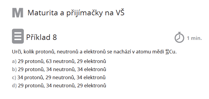 V každé kapitole v pracovním sešitě máme i příklady, které studenta připraví ke školní maturitě z chemie a hlavně k přijímačkám na vysokou školu.