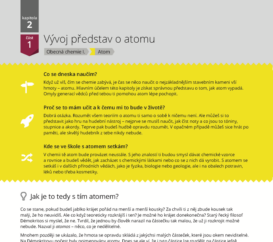 Na začátku studentovi vysvětlíme, kde se s probíranou látkou může setkat. V průběhu kapitol pak na konkrétních příkladech ukazujeme, k čemu se dá daná látka využít v běžném životě.